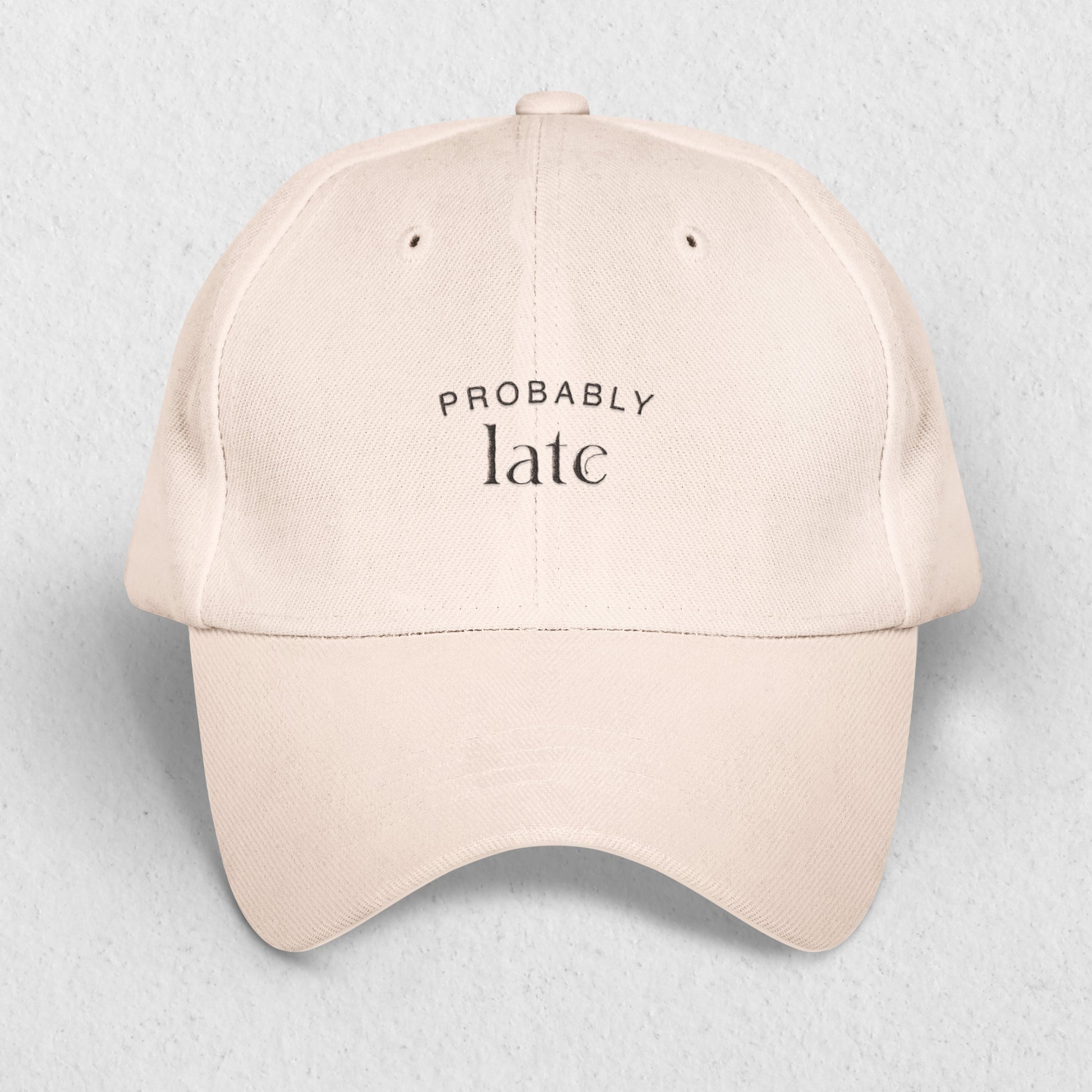 Couldn't load pickup availability For the friend who is always running five minutes behind and still looks effortlessly put together. Our ‘Probably Late’ Gesture Cap is a soft light brown, like an oat latte, with subtle Gesture branding that keeps it feeling premium yet playful. The clean silhouette and gently curved peak make it an easy everyday piece, whether it is thrown on for a coffee run, airport dash or lazy Sunday walk. Embroidered with the words “Probably late”, it is a quiet nod to real life, adding personality to even the simplest outfit. Think oversized blazer, joggers, chunky knit or summer dress; this cap slips in and instantly makes everything feel a touch cooler. Finished with thoughtful details and a comfortable adjustable back, it is designed to be worn on repeat and to age beautifully with time. Delivered in our luxury Gesture packaging, wrapped in gift paper and paired with a complimentary gift message card, it arrives ready to gift or keep for yourself. No extra wrapping needed, just a little everyday luxury with a wink.